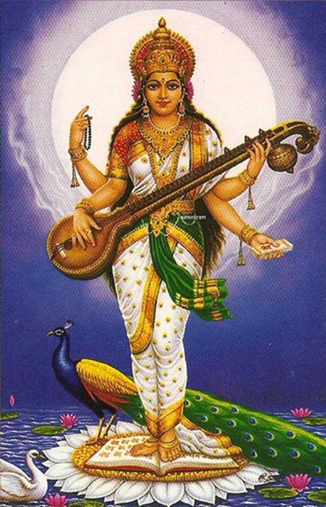 The earliest known mention of Saraswati as a goddess is in Rigveda. She has remained significant as a goddess from the Vedic period through modern times of Hindu traditions. Some Hindus celebrate the festival of Vasant Panchami (the fifth day of spring) in her honour, and mark the day by helping young children learn how to write alphabets on that day. The Goddess is also revered by believers of the Jain religion of west and central India, as well as some Buddhist sects. Om Eim Hreem Kleem Maha Saraswati Namaha.
